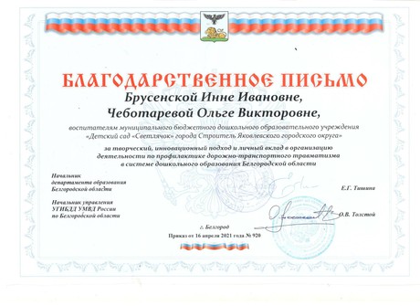 -ПРОСМОТР Совместный план работы МБДОУ «Детский сад «Светлячок» г.Строитель с ОГИБДД ОМВД России по Яковлевскому городскому округу