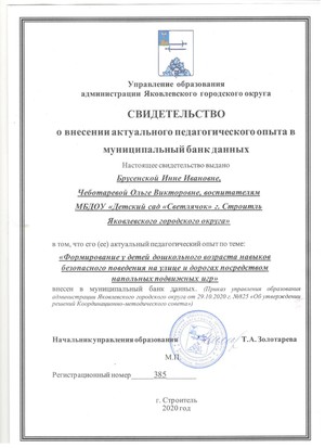 Практический материал опыта представлен картотекой дидактических игр по формированию у детей навыков безопасного поведения на дороге с использование досок (планшет) для рисования светом.