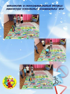 Именно применение напольных подвижных игр дает возможность непрерывного образовательного процесса. Не зависимо от режимного момента: непосредственно образовательная деятельность, самостоятельная деятельность, прогулка, игровое поле легко переносится в любое помещение или на улицу, что позволяет ребенку продолжать игровую деятельность и в непринужденной форме усваивать правила безопасного поведения.