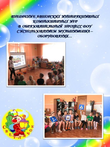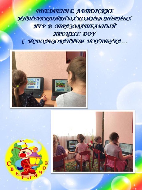 Авторские интерактивные компьютерные игры состоят из красочных анимированных слайдов, которые включают в себя занимательные вопросы, красочные картинки.