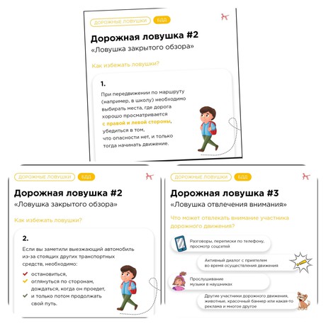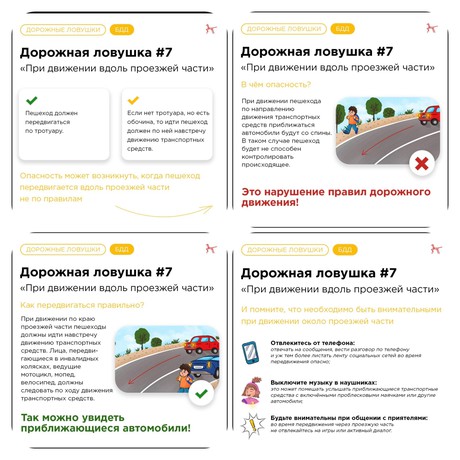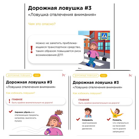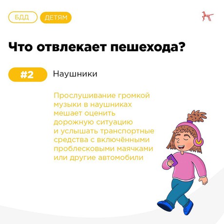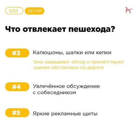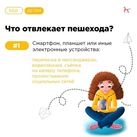 Чтобы пешеходу оставаться в безопасности нужно оставаться внимательным вблизи проезжей части дороги и при её переходе. Центр по профилактике ДДТТ Института воспитания подготовил карточки, где собраны основные факторы, отвлекающие внимание пешеходов.