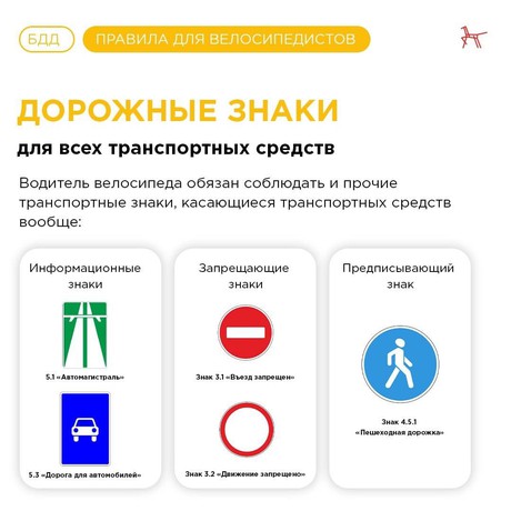 Обязательно соблюдайте правила дорожного движения для велосипедистов и регулирующие движение дорожные знаки.