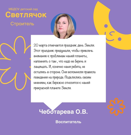 20 марта отмечается праздник день Земли. Этот праздник придумали, чтобы привлечь внимание к проблемам нашей планеты, напомнить о там , что надо ее беречь и защищать. И, конечно наши ребята, не остались в стороне. Они вспомнили правила поведения на природе. Поделились своим мнением, как бережно относится к нашей прекрасной планете Земля. Поиграв в дидактическую игру "Что для Земли плохо, что хорошо". А в завершении оформили книжку- малышку "Моя прекрасная Земля", в которой нарисовали правила бережного отношения к природе. Свои кижки- малышки ребята забрали домой,чтоб поделиться своими знаниями с родными. Напомнить всем, о важности бережного отношения к нашей планете Земля!